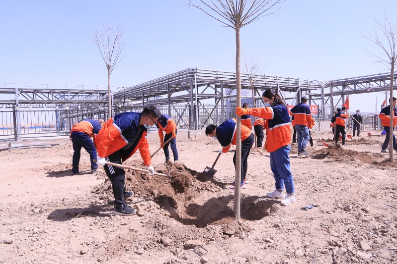 活動現場,黨員干部們熱情高漲、干勁十足,揮動鐵鍬、放置樹苗、填土踩實、澆水灌根,大家相互配合,有序分工,種植現場一片熱火朝天的景象。在大家的共同努力下,一棵棵新栽種的苗木昂首挺立,錯落有致,展現出勃勃的生機。