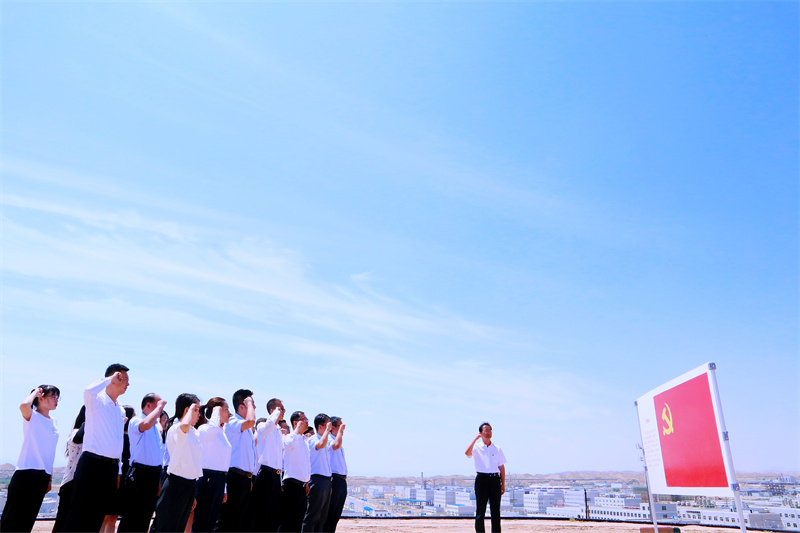 (全體黨員在蘭州新區綠色化工園區重溫入黨詩詞 周小勇/攝)