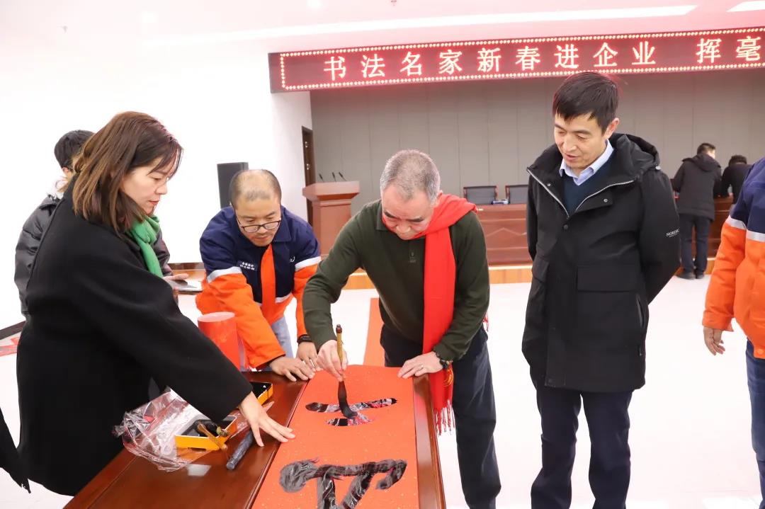 1月26日下午,蘭州新區美術家、書法家協會主席王先銀,副主席王安祥(2021年中國共產黨成立100周年獲得人民藝術家榮譽稱號),秘書長魏世全等6名書法名家赴石化集團同集團黨委副書記、總經理姜錦,工會主席劉東斌,副總經理李剛,總工程師葉得強一道為公司員工送“福”、送春聯,提前送上了新春的祝福與問候。