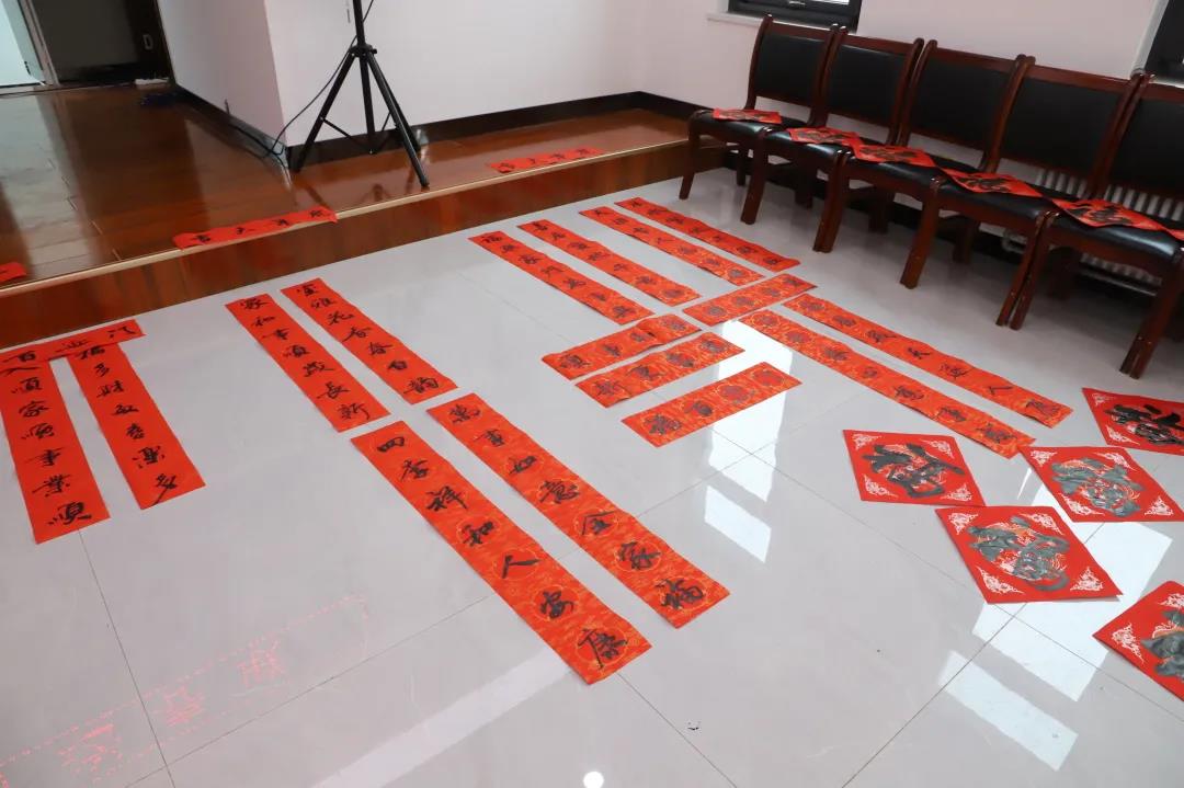 筆走龍蛇間,一張張筆酣墨飽、寓意吉祥的“福”字、春聯躍然紙上。集團各單位書法愛好者和員工們早早來到書寫現場,一邊幫著鋪紙調墨,一邊井然有序地向書法家們“求”取自己中意的春聯和美好祝福。兩個多小時,書法家們共寫出了200余幅作品,并現場講解釋義、互動交流,活動現場鋪滿了春聯和福字,形成了一片熱鬧非凡的紅色海洋。