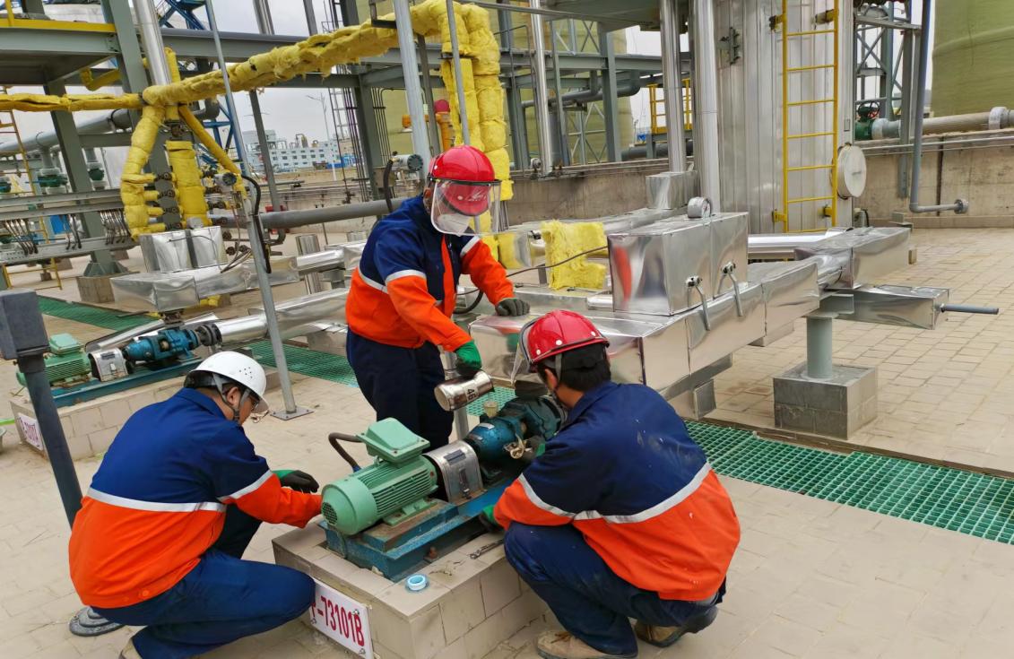 班組一線人員在班組長帶領下定時定期對各罐區及棧臺機泵進行全面盤車、檢查、保養,力爭在進行棧臺裝卸車、罐區取樣、吸收尾氣等生產操作時確保安全。 倉庫作為化工商貿公司的重大危險源之一,消防安全更是重中之重。項目部給各班組成員分配了定期檢查簽字、保養維修消防坊設施的任務。各級人員認真實施,在班長和各專工帶領下按時巡檢消防器材狀況、并打掃消防器材周邊衛生,將可能出現的消防隱患降到最低。