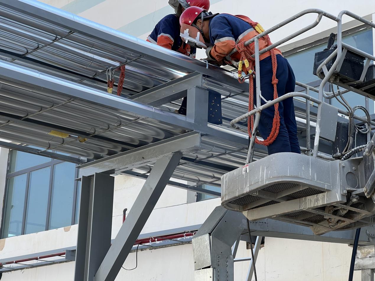 為了確保不影響裝置開工投運,車間要求加快檢修改造進度,力爭在六月底使得加藥間正常投運,面對緊迫的時間,工程公司檢修技術人員頂著高溫天氣,在檢修現場進行高強度的作業,異常悶熱的環境讓每個人汗如雨下,但是沒有一個人有怨言,他們不講條件,不講困難,主動放棄午休及周末時間加班加點,最終如期并且保質保量的完成了博石環保的加藥間改造并交付投運。