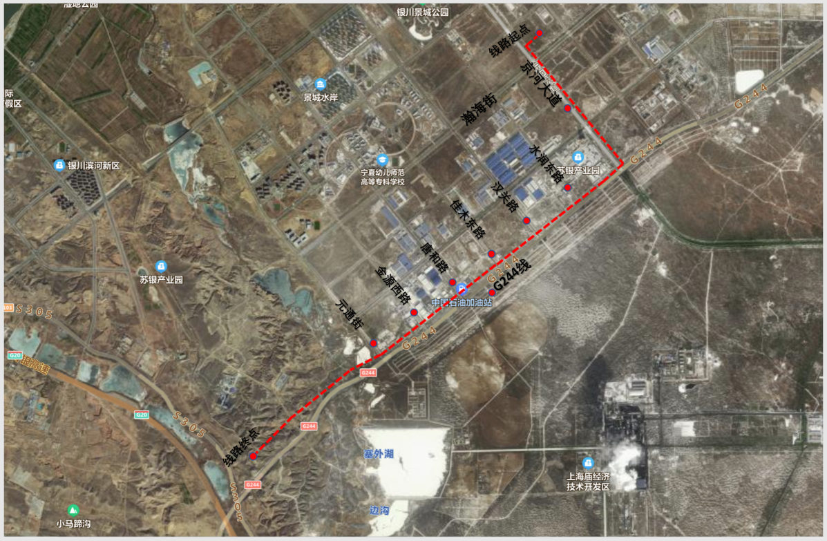 該項目本位于寧夏回族自治區銀川市興慶區濱河新區,項目起點位于寧夏寶豐能源區A區西南角,沿京河大道地埋至國道244線,沿線途徑水潤東路、漢關路、佳木東路、唐和路、金源西路、元通街,終點位于水洞溝隧道北側,明長城西側,線路總長為8.4Km。主要結構形式為混凝土支架、鋼桁架、地埋過路形式。