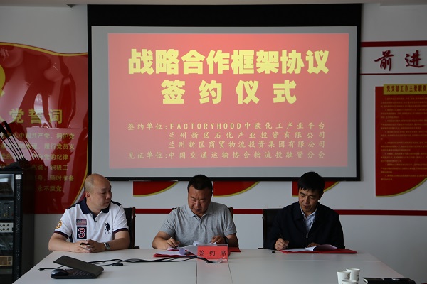 2020年7月1日上午,石投集團副總經理姜錦和商投集團董事長巨寶慶與FACTORYHOOD中歐化工產業平臺總經理趙達揚共同簽署了中歐“一帶一路”跨境化工貿易戰略合作框架協議。協議的簽訂,標志著石投集團和商投集團以發展西部互聯網經濟的B2B方向進行的新嘗試,充分利用跨境產業平臺積極踐行“一帶一路”國家發展戰略,爭取國家級“化工定位鐵路專用線”落地蘭州新區,為蘭州新區千億級綠色化工園區發展加速提供了有力支撐。
