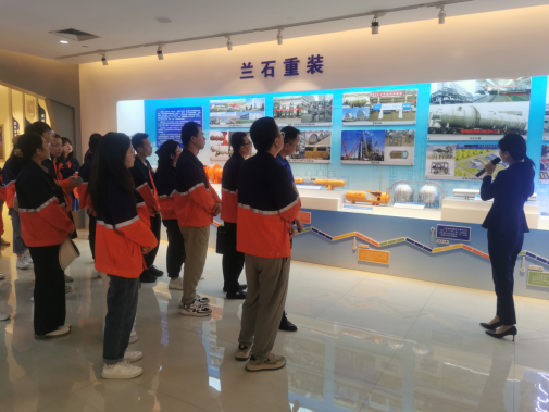 在講解員的指引下,全體人員走進蘭石集團展覽館,參觀了解了企業發展歷程、主營核心業務、能源制造全產業鏈布局、科技創新成果及在氫能、光伏等新能源新材料方面發展情況。重點了解了蘭石集團推動黨建融入生產經營、黨支部標準化建設以及特色品牌創建等方面的特色經驗做法,學習感受了高質量黨建、優秀企業文化助力生產經營提質增效的經驗做法。參觀過程中,雙方圍繞基層黨建共建提升、相關業務合作共進等進行了交流。