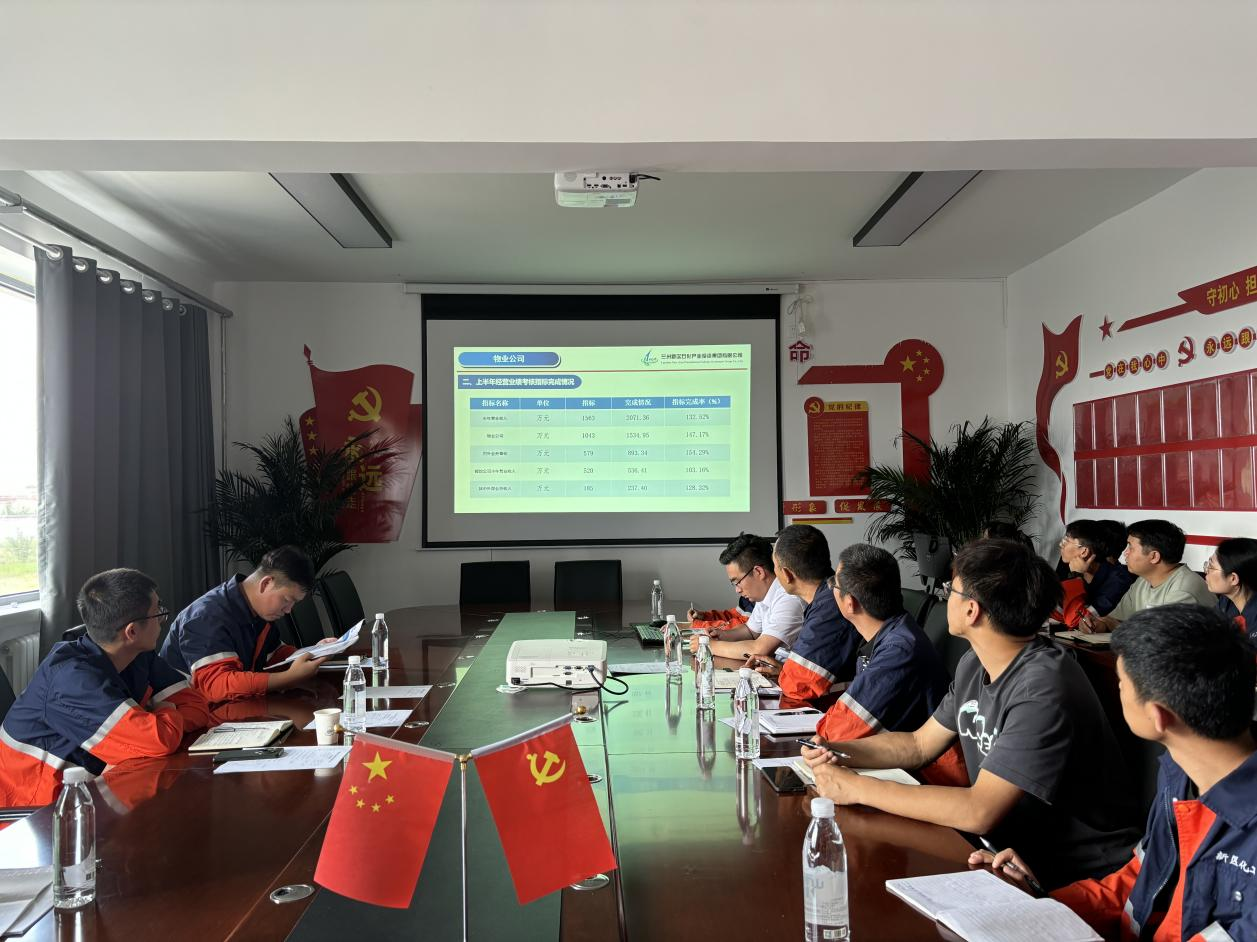 亮績賽績,攻擂打擂。為更好總結(jié)今年上半年工作,決戰(zhàn)下半年,7月30日,久泰物業(yè)公司召開上半年經(jīng)濟運行分析會,聽取各部室、子公司工作情況匯報,亮績賽績,查找問題,明確措施,推動形成比學(xué)趕超、奮勇爭先的濃厚氛圍,奮發(fā)有為推動企業(yè)高質(zhì)量發(fā)展。物業(yè)公司總經(jīng)理王闖講話,副總經(jīng)理達選東主持。