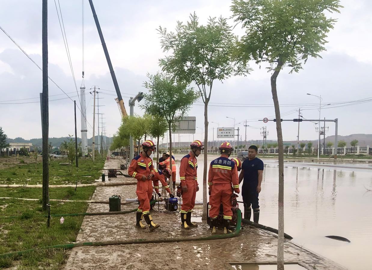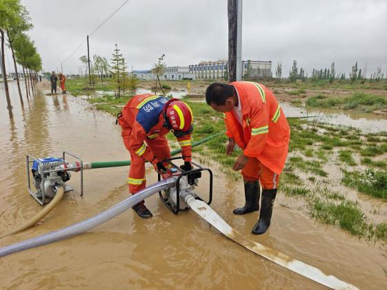 面對這一緊急情況,石化集團久泰服務公司迅速聯合秦川園區消防隊展開搶險救援行動此次應急救援隊伍共計人力108人,清掃車2輛,水車4輛,消防車2輛,水泵5臺,處理路面積水區域 8 處累計抽水900余方,對 6 處路面淤泥進行了清理,并成功恢復車輛通行道路 3 處。